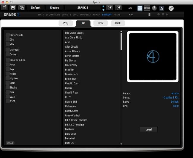 Spark является творческой драм-машиной, объединяющей аналоговый синтез, физическое моделирование и воспроизведение сэмплов в мощном звуковом движке, открывающим новые возможности в создании ударных. Spark идеально подходит не только для студийной работы, но также и для живых выступлений, благодаря уникальным органам управления, таким как FX Pad или Looper. Spark включает 30 различных установок, предлагая эмуляции различных драм-машин, виртуальных акустических ударных установок и современно звучащих битбоксов.