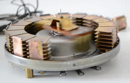 The original scanner-vibrato was developed in the 1940s, and was an analog, electromechanical device, consisting of an analog delay line and a mechanical rotor ("scanner"). The rotor was driven by the organ's internal motor, and therefore its rate was fixed at about 6.9 Hz. The original scanner-vibrato could produce both chorus and vibrato effects, and it offered three depth presets.