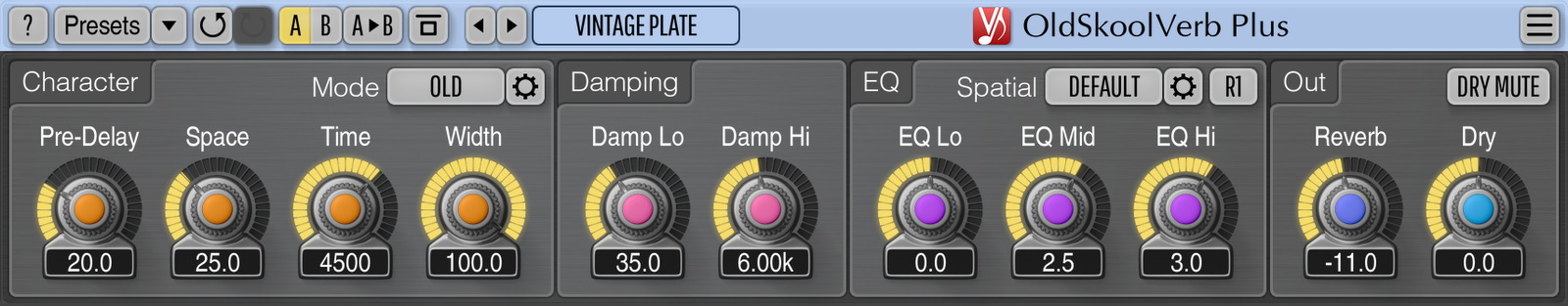 OldSkoolVerb Plus это алгоритмический ревербератор для профессиональных задач при создании музыки. Плагин является расширенной версией бесплатного эффекта OldSkoolVerb. OldSkoolVerb Plus воплощает классический алгоритм стерео реверберации, который технически прост, но оптимален. Он производит очень четкий пространственный образ, который хорошо сочетается с миксом. Плагин предлагает полный набор параметров, позволяющих достичь различные типы реверберации, от пластинной и комнатной до реверберации зала. По сравнению с бесплатной версией, версия Plus содержит дополнительный пространственный модуль, который предоставляет дополнительный контроль над пространственным образом реверберации и значительно повышает ее плотность.
