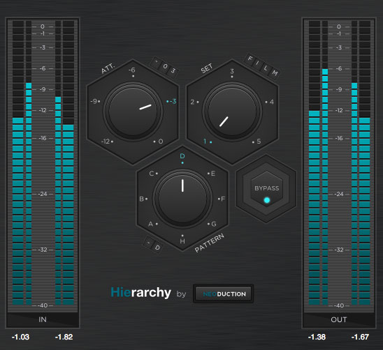 For your convenience Hierarchy comes with a gain control to adjust the input level and VU meters and peak meters both the input signal and the output plugin.